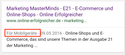 Beispiel für ein Suchergebnis einer mobilen Webseite Beispiel für ein Suchergebnis einer mobilen WebseiteBeispiel für ein Suchergebnis einer mobilen Webseite
